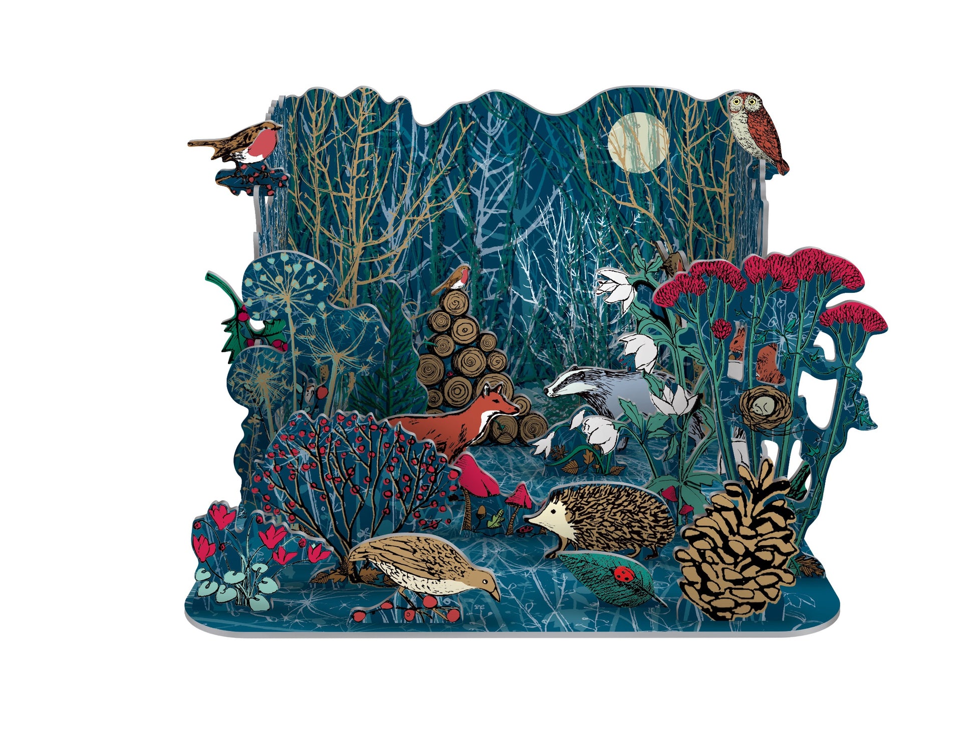 Roger la Borde 3D Pop & Slot Adventskalender "Winter's Tale ". Packungsgröße: 40 x 26 cm, konstruierte Größe: 22 cm hoch, 25 cm breit, 21 cm tief.