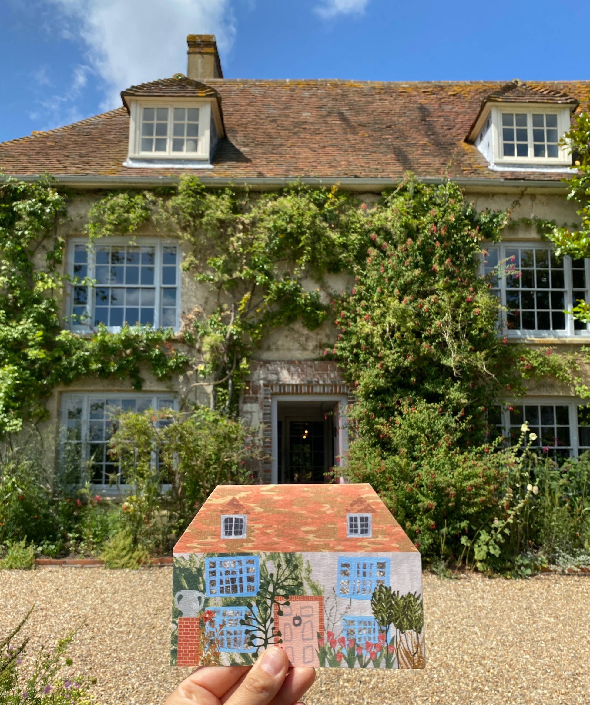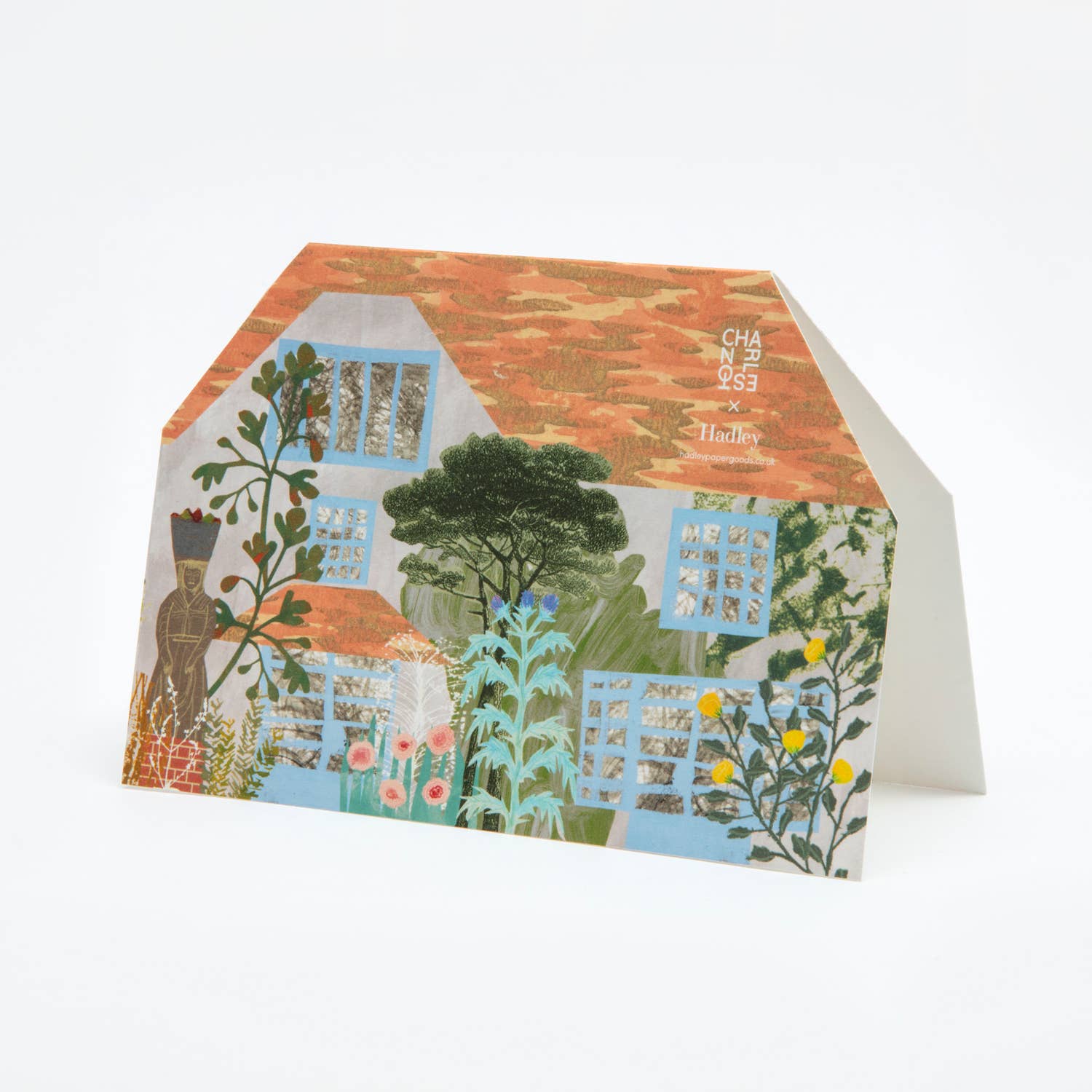 Diese Karte ist eine einzigartige Darstellung des ikonischen Charleston, Heimat der Bloomsbury-Gruppe - einige der radikalsten Künstler, Schriftsteller und Denker des 20. Jahrhunderts (denken Sie an Virginia Woolf, Vanessa Bell, Roger Fry). Dieses hausförmige Design vereint all die üppigen Texturen und kräftigen Farben, die Sie bei einem Besuch des Hauses und der Gärten erleben würden, und es ist wirklich ein Schmuckstück für Ihren Kaminsims!
