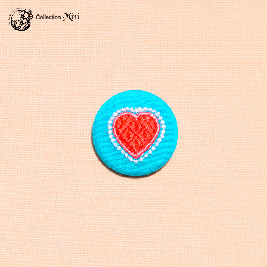 une hirondelle fait le printemps. - gestickte Brosche "Herzchen" blau