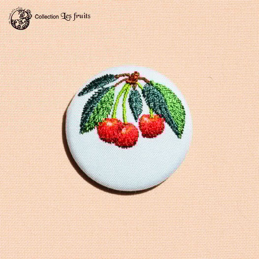une hirondelle fait le printemps. - gestickte Brosche "Kirschen" blau